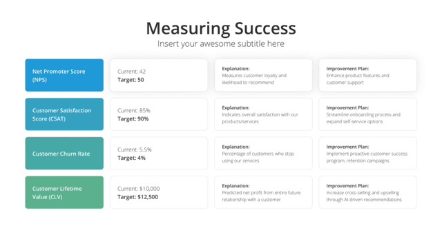 Map out the customer experience with the Customer Journey slide. From awareness to loyalty, it visualizes every touchpoint and interaction, offering insights into customer perceptions and decisions. It’s essential for understanding pain points, optimizing touchpoints, and enhancing overall customer satisfaction.