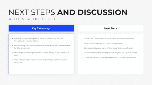 Transform your Customer Journey Mapping vision into reality with Twodart’s user-friendly platform. Follow our step-by-step guide, harnessing our vast collection of slides and tools, to create a compelling and cohesive presentation that resonates with your audience.