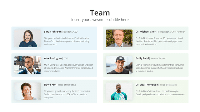Introduce the driving forces behind your organization with the Team slide. With a focus on highlighting individual expertise, roles, contributions, and unique strengths, this slide fosters a deeper connection between the audience and the team. By showcasing the collaborative spirit and collective skills, it emphasizes unity and commitment to excellence.