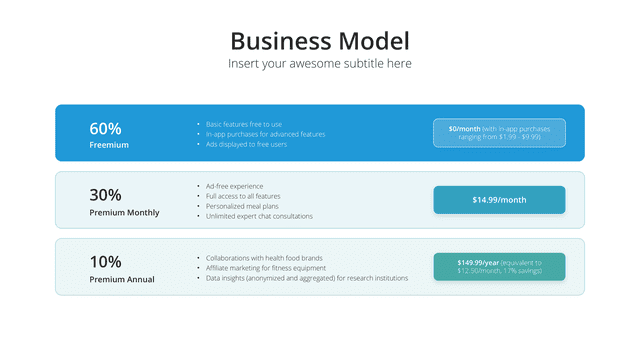 Illuminate the core mechanics of your business with the Business Model slide. Tailored to detail how your organization creates, delivers, and captures value, it provides a bird’s-eye view of operations and strategy. It clarifies revenue streams, value propositions, and key partners, ensuring stakeholders grasp the essence of your business approach.