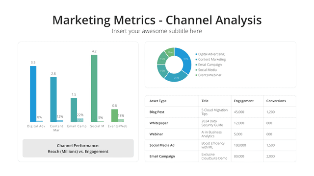 Offer a snapshot of your project or proposal with the Executive Summary slide. Designed to present key points, objectives, and outcomes in a concise manner, it sets the stage for deeper dives into specific areas. It’s essential for capturing attention and providing a quick overview of the topic at hand.