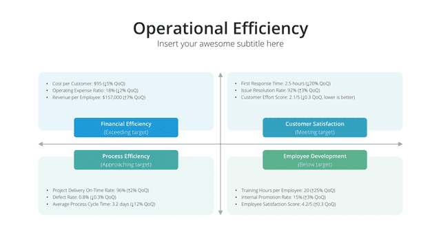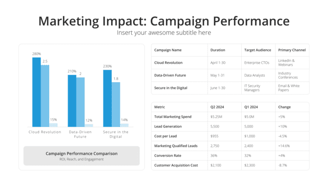 Elevate your business communications with our meticulously designed Quarterly Business Review Presentation Template. Crafted for clarity and impact, this template offers a comprehensive framework to showcase your company’s quarterly performance, key achievements, challenges faced, and strategic plans moving forward. Each slide is purposefully structured to present complex business data in an easily digestible format, ensuring stakeholders gain a clear understanding of your company’s progress and future direction.